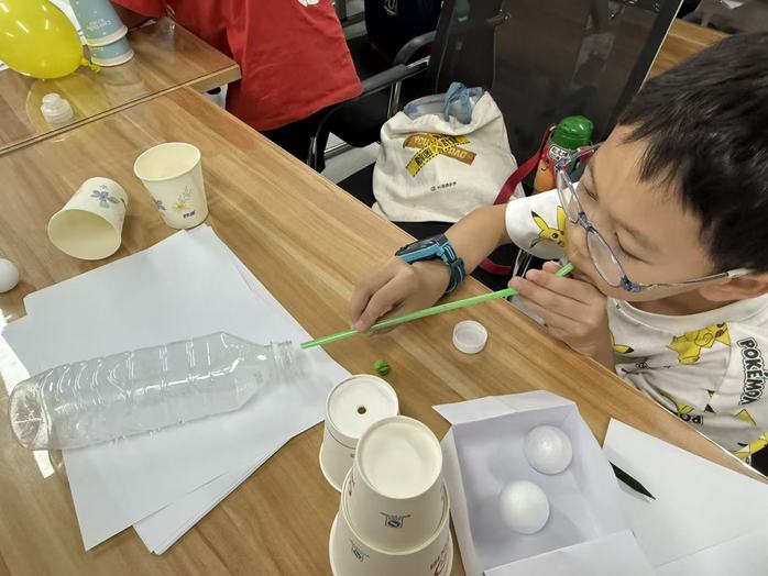 在课堂上,高雯吴钰老师凭借丰富的专业知识和教学经验,为孩子们带来了一场妙趣横生的科学探索之旅。在“神奇的控水术”实验中,孩子们通过亲手操作,直观地了解了大气压强的基本概念;“会轻功的回形针”实验让孩子们感受水的表面张力,激发了他们创造性开展科学探究的兴趣;“棉花糖挑战”活动则以小组合作的形式,让孩子们在共同完成任务的过程中,增强了沟通能力和问题解决能力。