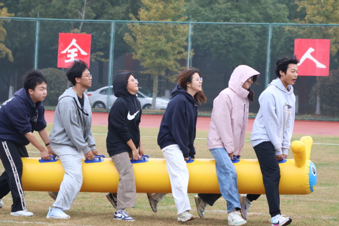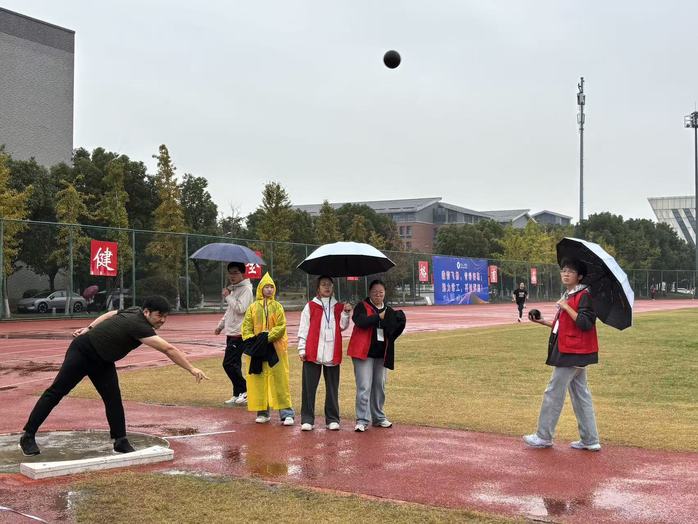 赛场上,健儿们全力角逐。长跑赛道上,唐舜敏顶住体能压力,勇夺女子800 米第一名;田赛区域亮点纷呈,张颖娜凭借连贯的助跑、踏跳动作获女子三级跳第七名,邱子晏在女子铅球项目中奋力投掷,斩获第五名;径赛单项中,陈淑桦在女子 400 米赛道奋力冲刺,拿下第七名。集体项目里,协作之力尽显:集体长绳队员默契配合,斩获第三名;毛毛虫竞速队员同步迈步,获第五名;女子 4×400 米、4×100 米接力队精准交接,分别获第七、八名。学院老师们也积极参与到教职工运动会中,从三尺讲台走向体育赛场。比赛中,他们奋勇争先、全力以赴。单人项目中他们奋力拼搏、一马当先,集体项目中他们团结一致、争创佳绩,为师范学子树立了拼搏奋进、积极进取的榜样示范。赛场内外,红马甲志愿者与工作人员忙碌穿梭,引导路线、分发物资,为运动员提供细致周到服务;看台上,180名师范生组成的“加油团”热情呐喊,加油声、欢呼声此起彼伏,为运动员的每一次突破喝彩。