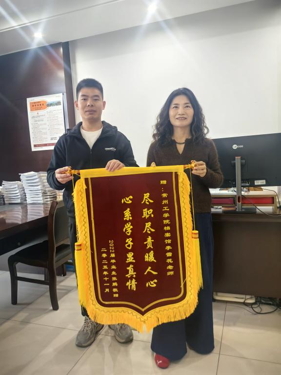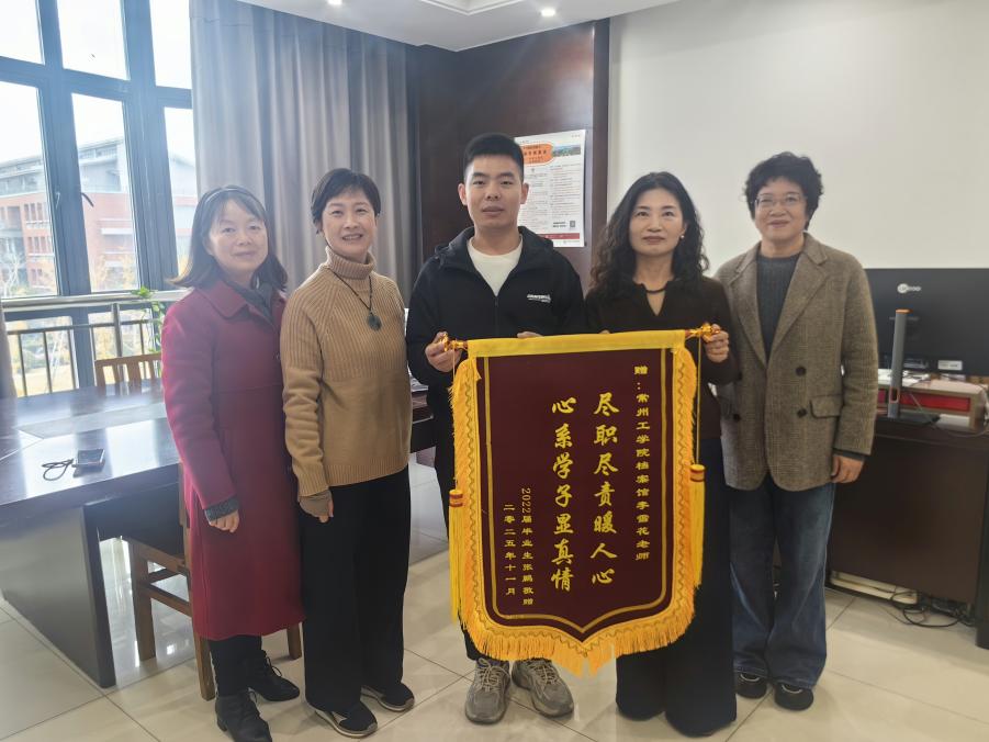 2025年12月2日,冬日暖阳洒在常州工学院校园。这一天,东华大学硕士研究生的2022届校友张鹏专程从上海赶回母校,将一面写有“尽职尽责暖人心,心系学子显真情”的鲜红锦旗,郑重地送到学校档案馆李雪花老师手中。锦旗背后,是一段跨越三年、辗转多地却始终被母校牵挂的温暖故事。